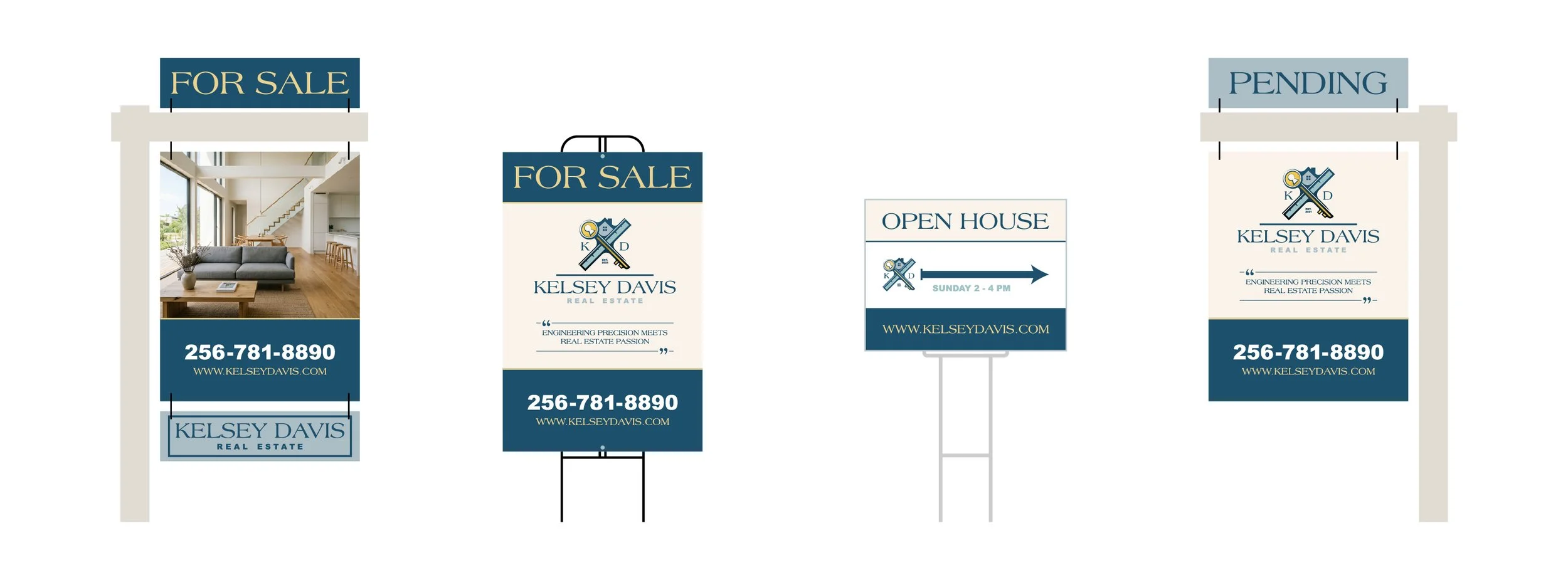 Kelsey Davis is an established real estate agent who operates in Huntsville, AL. I previously printed her signs with her generic brokerage branding. However, she desired to develop her personal brand that she could use and incorporate into her real estate business. My goal was to help her achieve this by developing a logo system, social media templates and revamped signage.