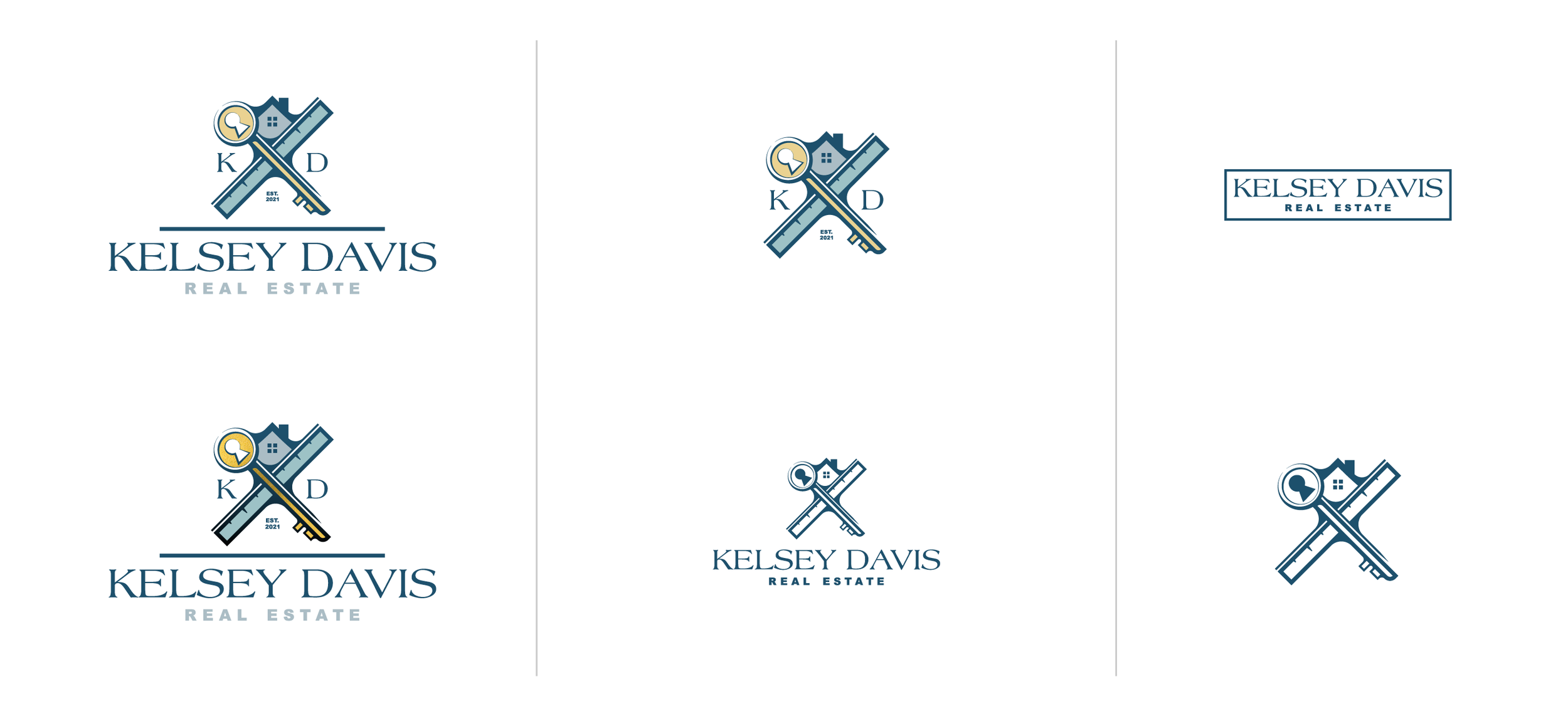 For this concept, I used Kelsey’s engineering tagline as a foundation. The ruler is a representation of precision and a callback to her time as an engineer. The key represents that feeling a family gets when they step into their new home. The 4 quadrants (formed by the key and ruler) fits the establishment year and initials, along with the house.